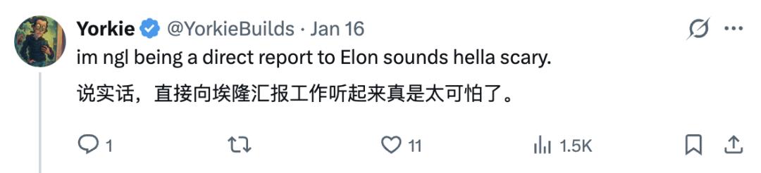 说实话,直接向Elon汇报工作……听起来有点太吓人了。
