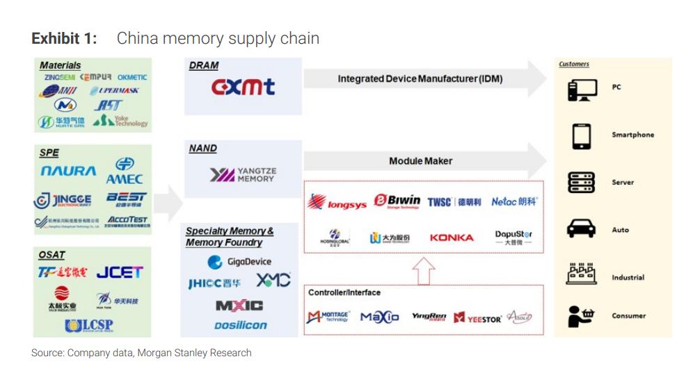 基于上述技术趋势,摩根士丹利重申了对中国内存和半导体设备本土化主题的看好。