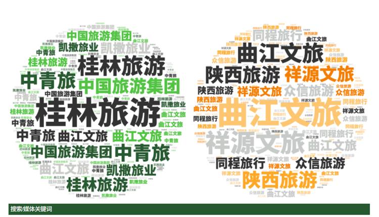 媒体指数|媒体指数整体表现呈小幅上升态势,主要得分集中在垂直网站宣传和头部财经纸媒的宣传,得分TOP5的品牌分别为是曲江文旅、祥源文旅、陕西旅游、同程旅行、众信旅游。本月的媒体稿件中,热度较高的关键词为、人事任命、战略合作、战略投资等,如陕西旅游申报上交所主板上市;曲江文旅聘任李崧为董事会秘书;阿那亚落户深圳大鹏等媒体稿件热度较高。