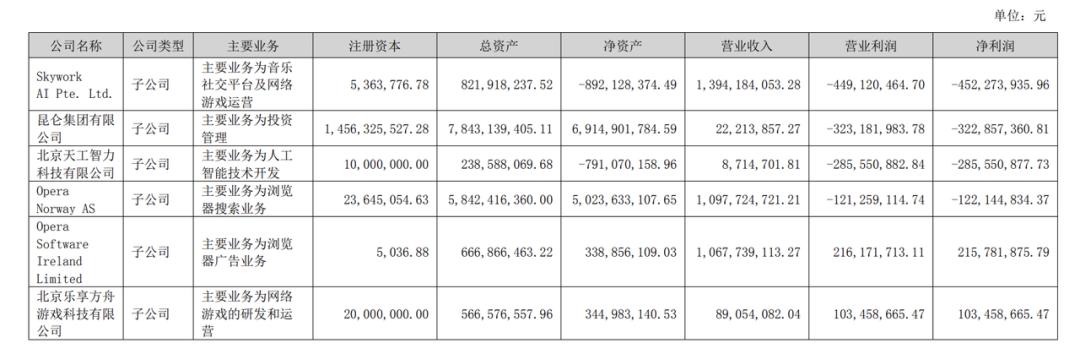Skywork AI Pte. Ltd.是昆仑万维旗下主要业务为音乐社交平台及网络游戏运营的子公司,2025年上半年收入为13.9亿元,营业利润为-4.5亿元。2024年的收入和营业利润分别为,16.6亿元和-3.5亿元。