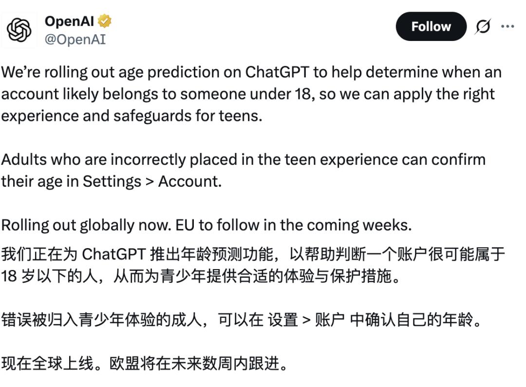 OpenAI的这套新政,与他们曾经批评的体系在逻辑上惊人的一致:以「保护」的名义,通过让渡部分隐私,来换取有限的数字权利。