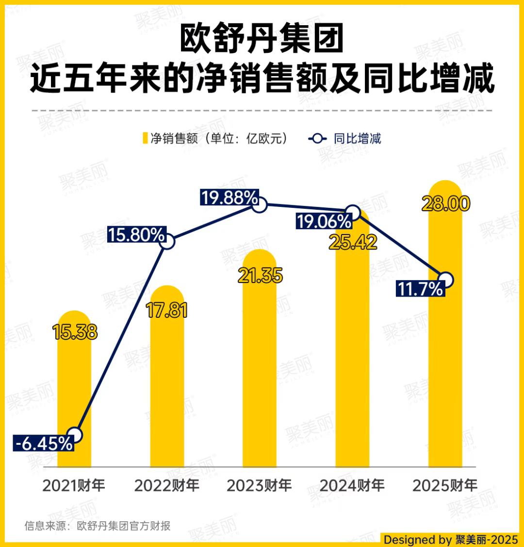 从其私有化后的首份年报可见,集团营收规模仍保持增长,2025财年(2024年4月1日-2025年3月31日)销售额为28.00亿欧元(约合人民币228.02亿元),同比增长11.7%。但对比近5年业绩走势,其增长速度已明显放缓。