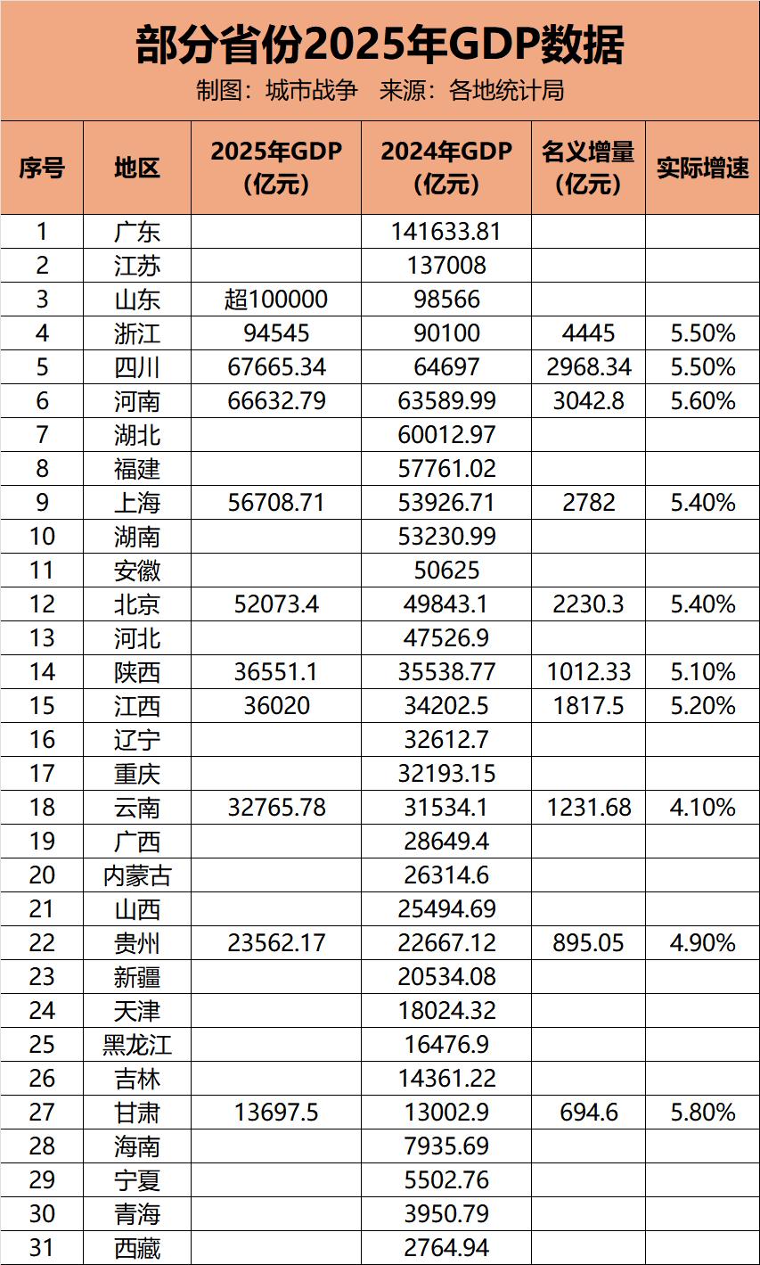 其中最受关注的是山东省,尽管具体数据尚未正式出炉,但据媒体报道,2025年山东省地区生产总值预计超过10万亿元,将成为全国第三个、北方第一个GDP超10万亿元的省份。