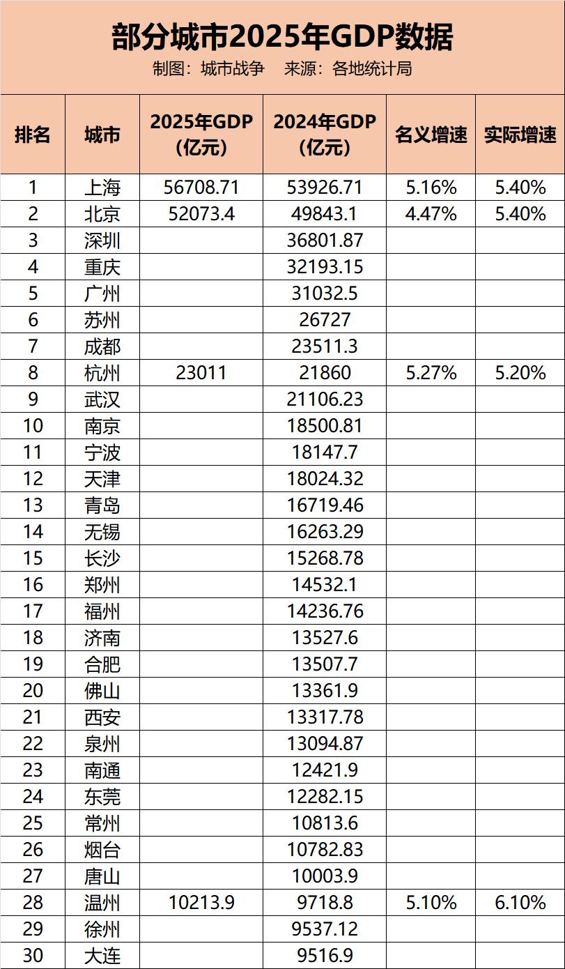 近日,多个城市陆续发布2025年经济数据。