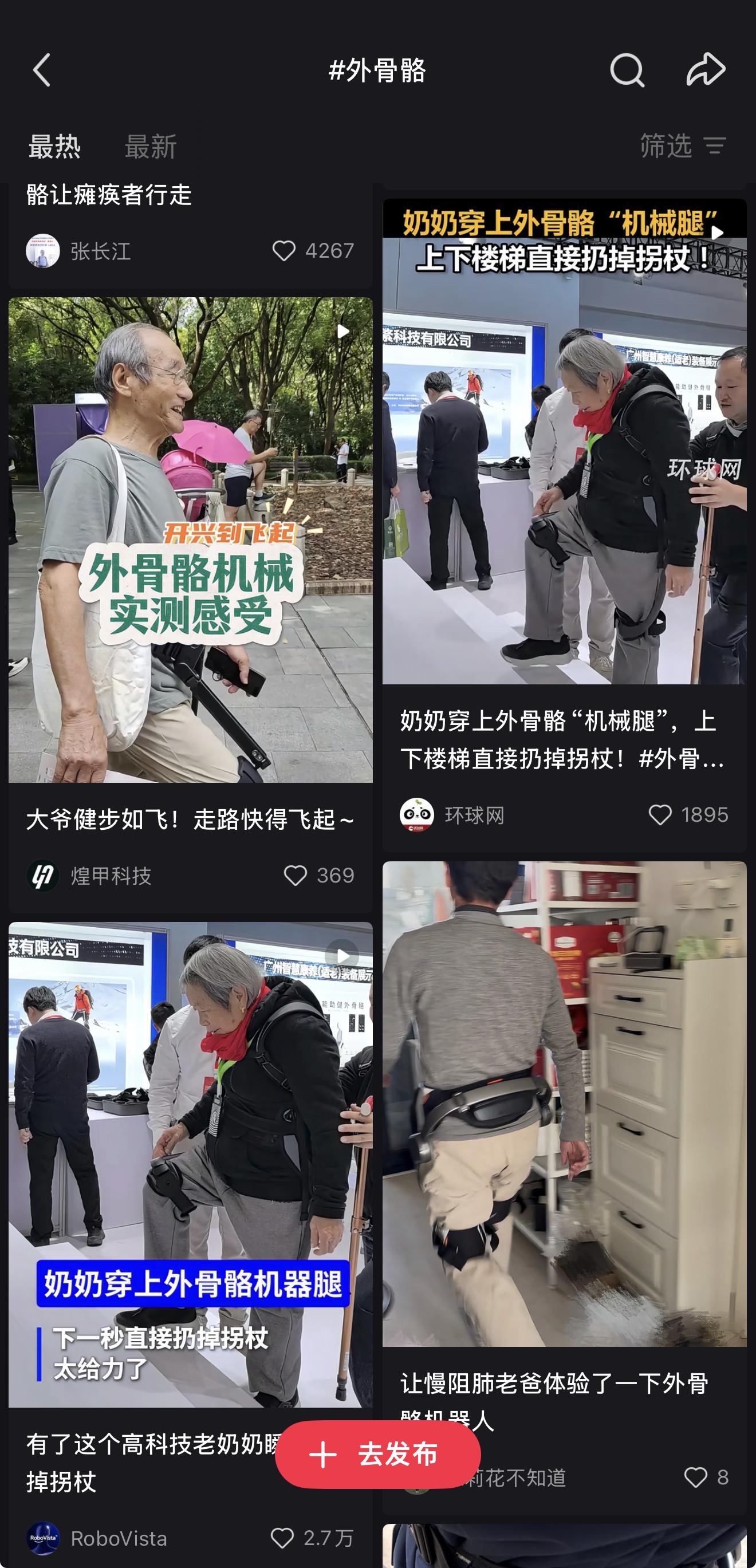 在小红书,小雷就看到不少分享消费级外骨骼机器人体验的笔记,其中多数实际体验和使用者是个人康复和医疗康养人群。