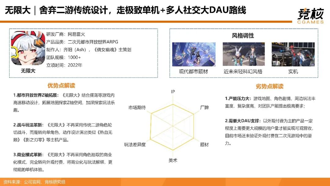 近5年来头部二游沿用了《原神》的玩法设计框架做细分尝试,核心玩法、养成、商业、社交模式创新度较低,品类整体降肝减氪自降营收天花板,体验趋向同质化;更新速度受产能限制,长线运营难度大。