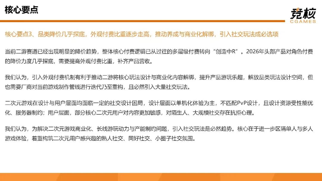 核心要点3:品类降价几乎探底,外观付费比重逐步走高,推动养成与商业化解绑,引入社交玩法成必选项