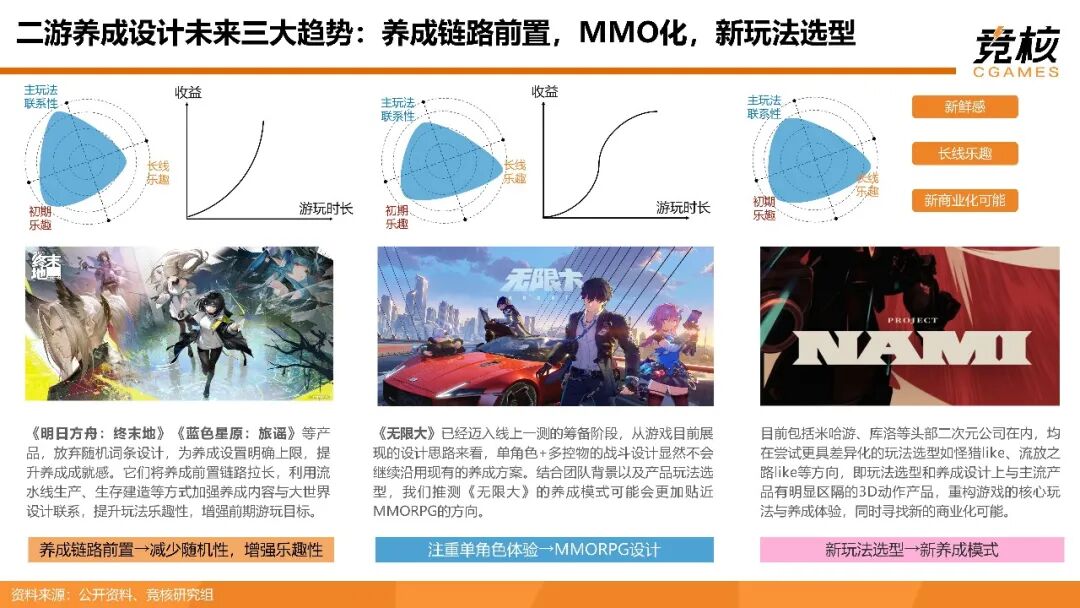 我们认为,未来两年头部二游将围绕养成、商业化、社交设计革新探索新终局玩法。