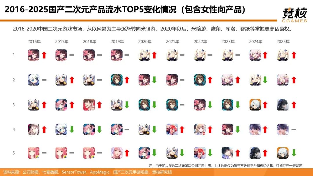核心要点1:米哈游《原神》周期结束,网易鹰角完美米哈游有望引领新一轮二游繁荣周期