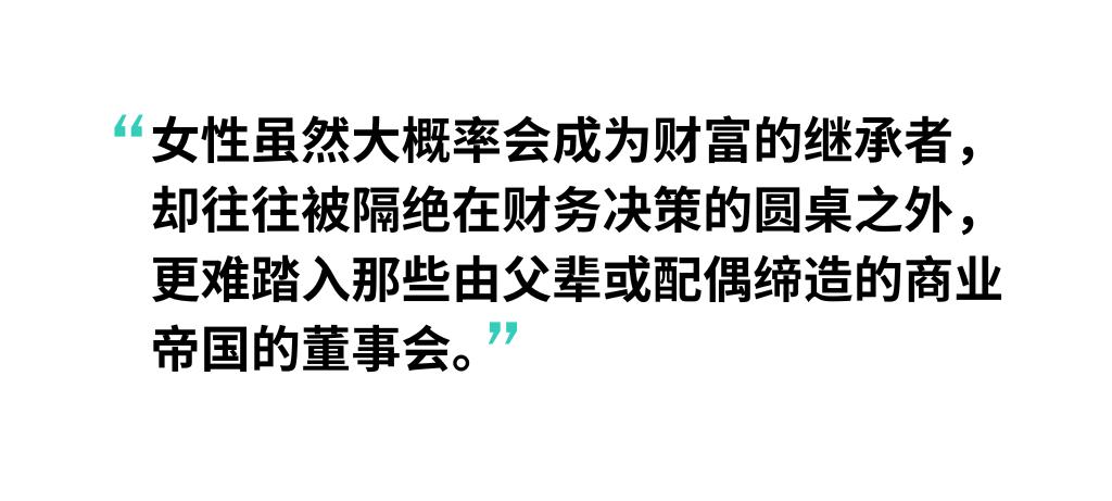然而,现实情况往往是:女性虽然更可能成为财富的直接继承人,却常被隔绝在家族财务规划的核心讨论之外。即便在由父母或配偶创下巨额财富的企业中,她们也极少能进入董事会,成为真正的决策者。