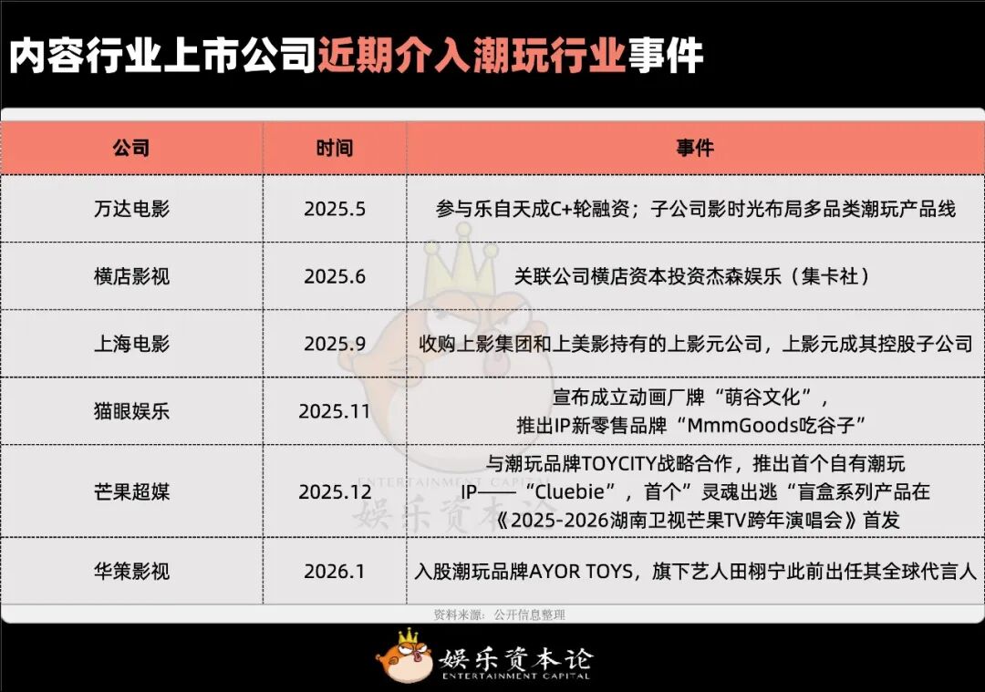 内容行业上市公司近期介入潮玩行业事件资料来源:公开信息整理