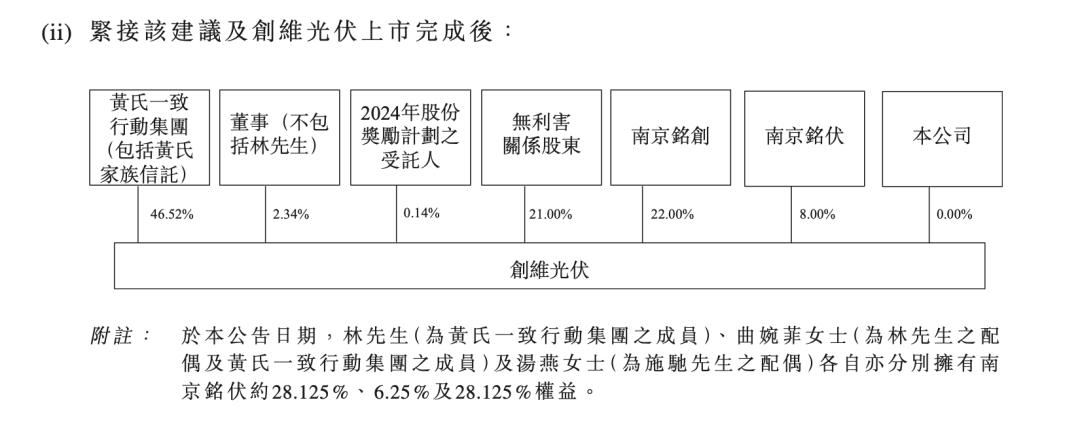 根据公告,完成分拆上市后,黄氏家族将持有创维光伏46.52%的股份。
