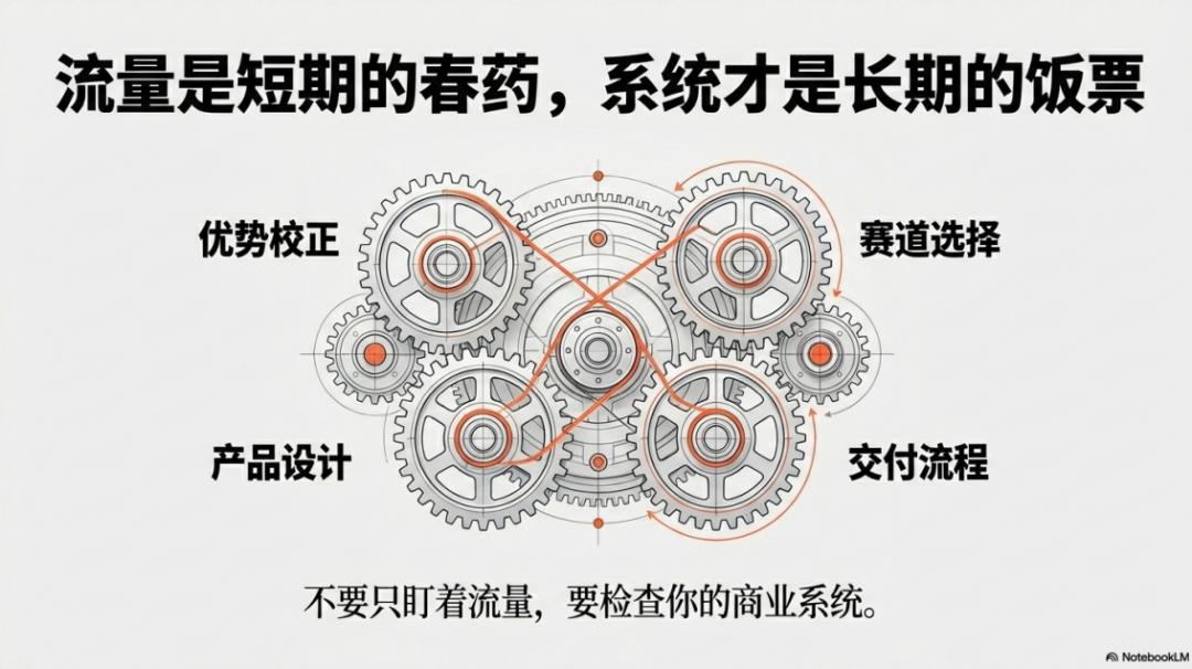 当你构建了一个从优势到产品、再到交付的完整系统,你会发现,流量只是水到渠成的事。