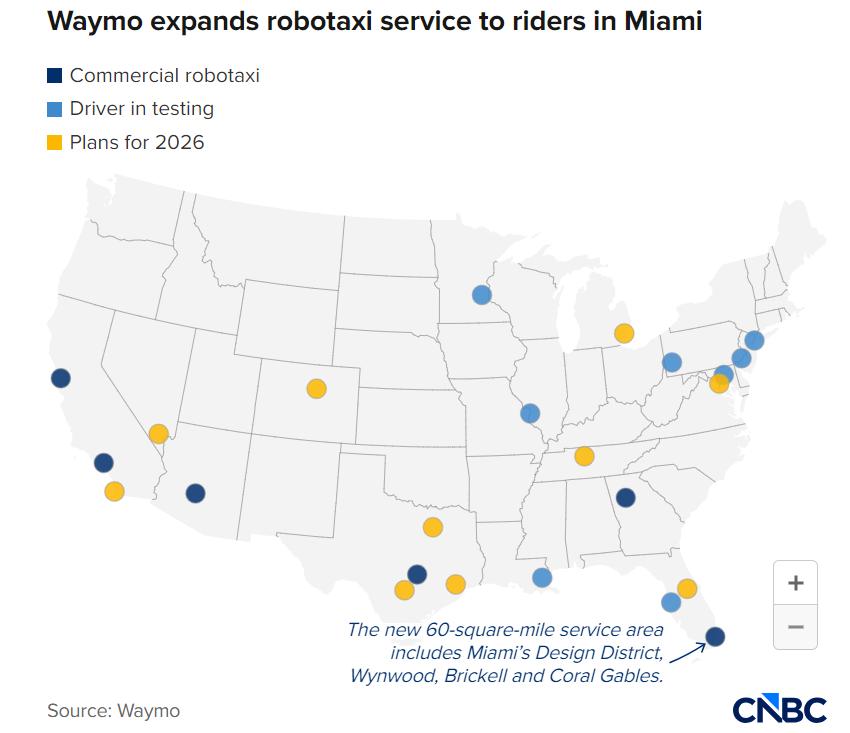 一个来自特斯拉在美最大的L4对手,谷歌旗下的Waymo。Waymo刚宣布,正式在美国迈阿密推出Robotaxi服务。
