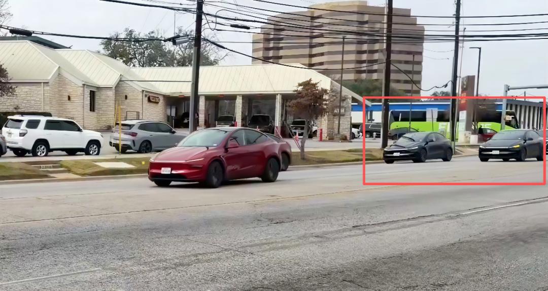 但这两辆无人车后面,还分别紧跟着辆黑色的特斯拉,车内是有人的。