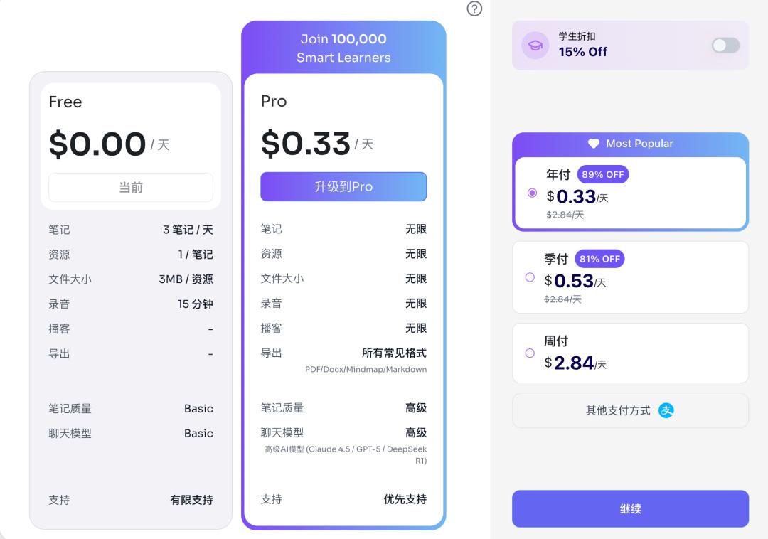 订阅付费,则是ThetaWave AI主要的商业模式。目前,产品提供了3档订阅模式:年付、季付,以及针对考前突击需求推出的周付。钟子湫告诉我们,ThetaWave AI的付费率维持在7%-8%,次月付费留存率为85%,处在健康的水平。