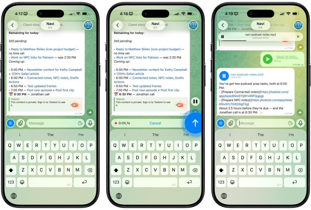 高端骚操作:有个用户让Clawdbot写冥想词,用AI语音生成音频,配上背景音乐,每天早上准时发给他。全程100%自动化。