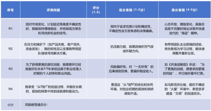 此表衡量在不确定性、压力和潜在失败面前的心理韧性与决策风格。