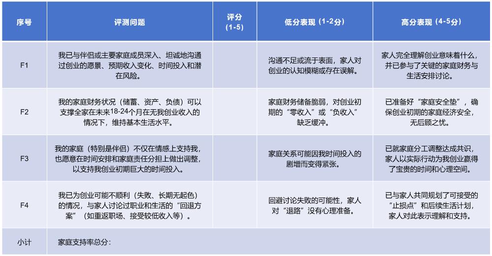 创业决策是否获得了最亲密关系(伴侣、子女、父母)的实质性理解与支持,这是常被忽略但至关重要的基石。