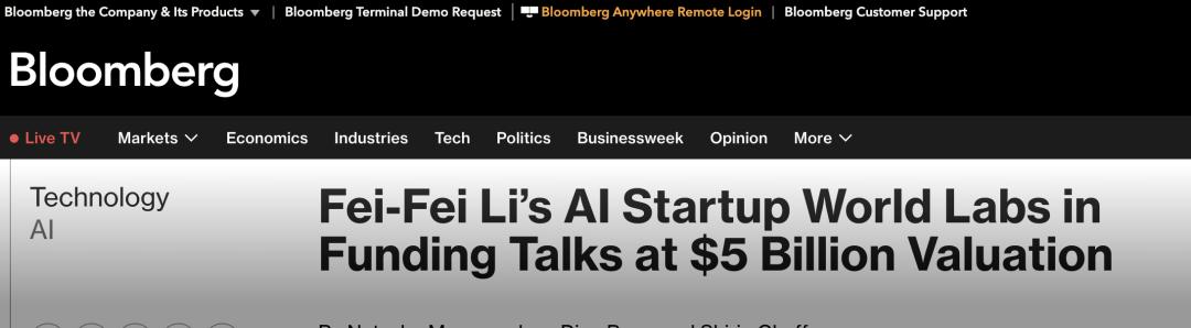 据彭博社消息:李飞飞创办的World Labs正在以约50亿美元估值进行新一轮融资,融资规模最高可达5亿美元。