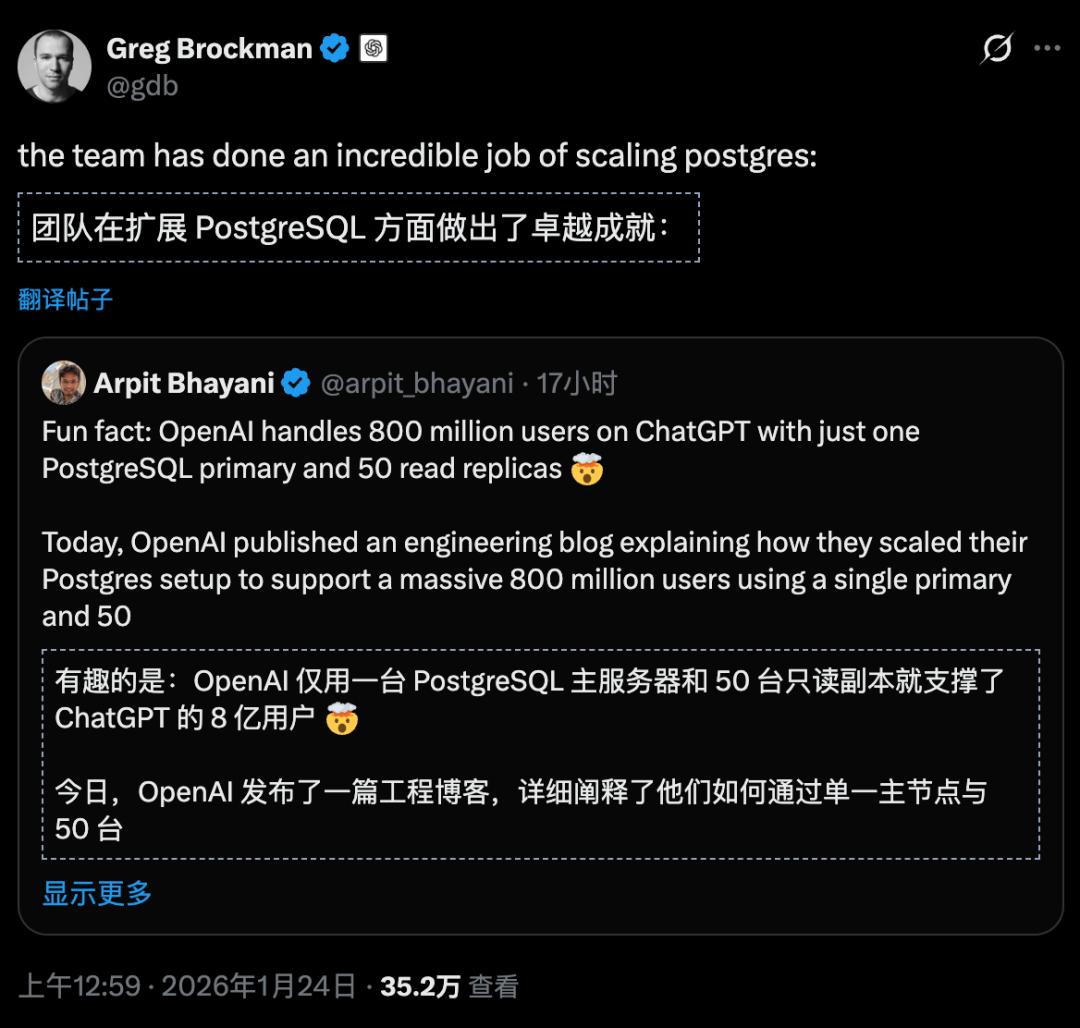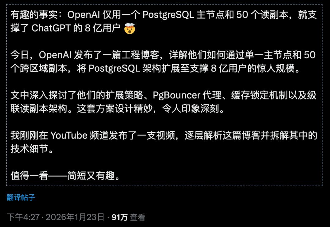 结果OpenAI告诉你:我们就用个PostgreSQL,照样扛。
