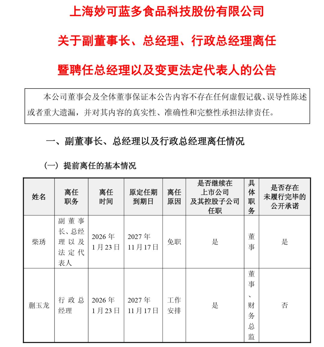 昨日,被称为“奶酪茅”的妙可蓝多(600882.SH)突然发布了一份措辞冰冷的公告:创始人柴琇被免去副董事长、总经理及法定代表人职务。