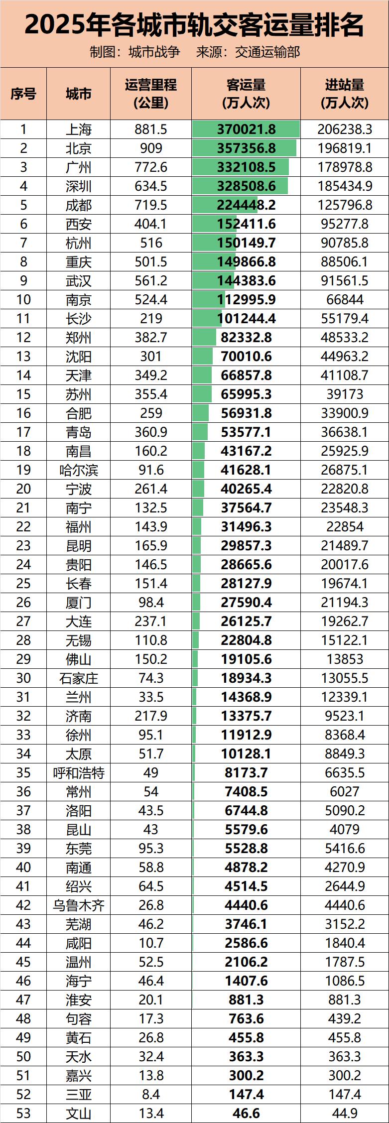 编者注:本文数据来自交通运输部发布的《2025年城市轨道交通运营数据速报》,以及媒体公开报道。