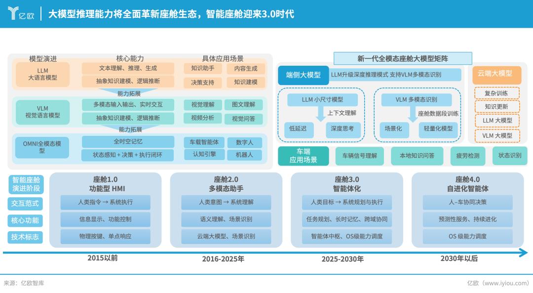 大模型正在向具有推理能力的智能体演进,并推动智能座舱从“交互工具”向“系统级智能体”跃迁,座舱正式进入3.0时代。