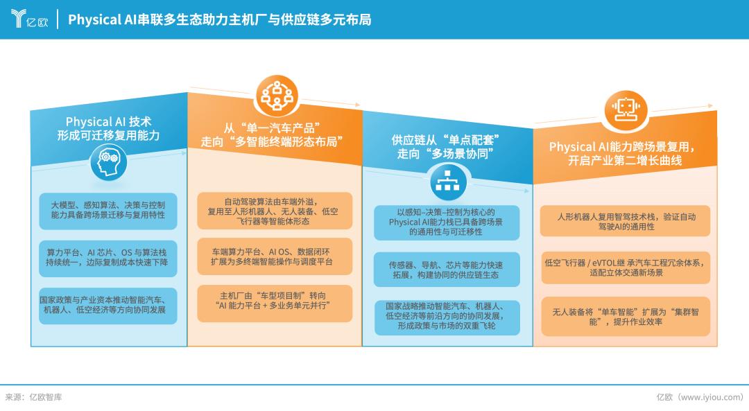 以智能驾驶为代表的Physical AI能力,正演进为可迁移的通用能力底座,将汽车场景中沉淀的技术体系扩展至多种智能终端,实现能力复用与生态协同。