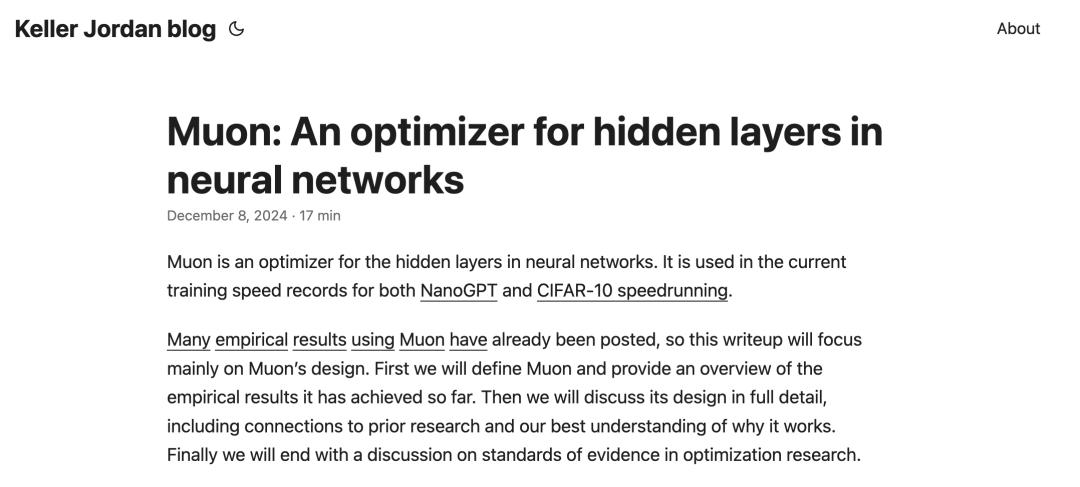 后来,一篇2024年底写下的一篇博客Muon: An optimizer for hidden layers in neural networks,则真正为Keller拿下了一张去OpenAI的船票。