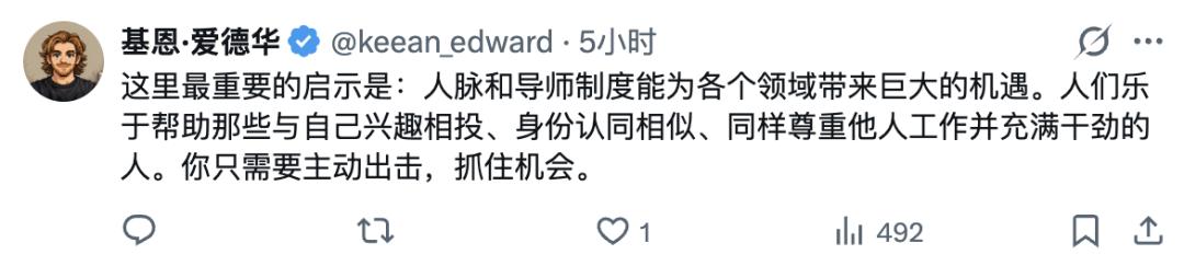 总体看下来,他们都有一些相同的特质。比如,主动性极强(热爱)、公开研究,不闭门造车、工程能力在线、会PR、不执着于头衔。
