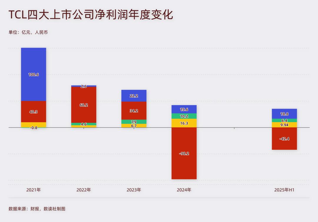 黑电是TCL的传统优势,TCL电子最近几年实现了营收利润双增长。2025年上半年,TCL营收近500亿,同比增长20.4%;净利润近10亿,同比增长67.8%。不过,这部分业务毛利率较低,常年维持在15%-20%之间,去年上半年为15.27%,触及了近几年来毛利率的新低。