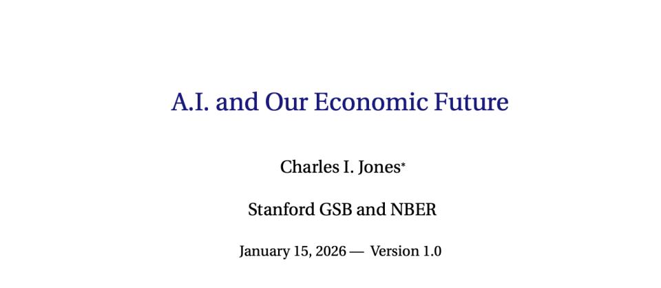 而斯坦福大学商学院经济学家 Charles I. Jones 在 2026 年 1 月发布的最新论文《人工智能与我们的经济未来》(A.I. and Our Economic Future),为这场争论引入了一个超越具体技术参数的宏观框架。Jones没有纠结于模型能力的范围,而是通过数学化的生产函数模型模拟了AI在不同场景下的可能。他认为,AI 确实拥有引爆经济的潜力,但这个引爆过程将被经济系统中的「薄弱环节」无情地拉长。