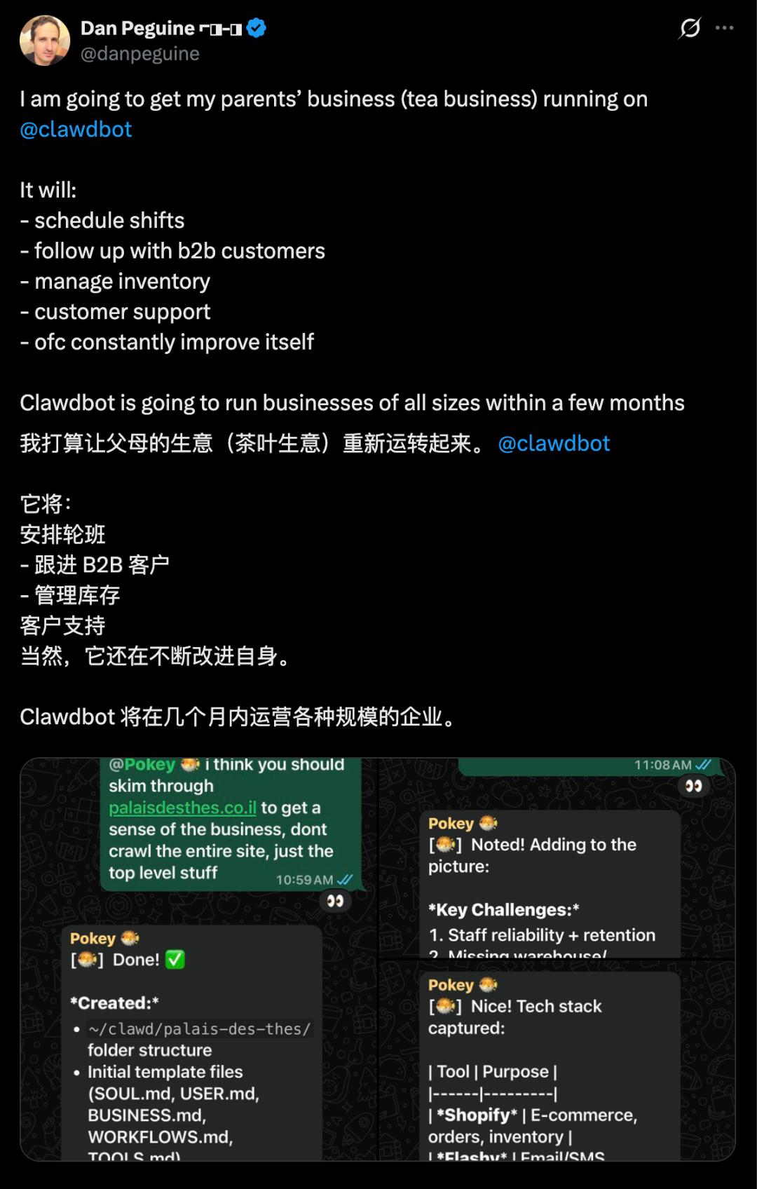 不只是能在买东西的时候,帮我们讲价省钱,还有人直接部署它来运营一个茶叶公司。这回真的是一台 Mac mini 就是一家公司了。