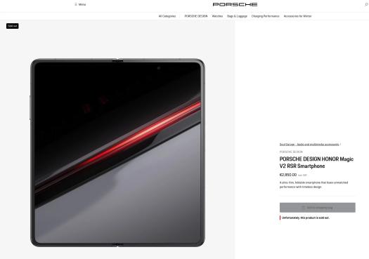 此外,根据不同市场的不同消费群体的特点,荣耀也在不断尝试差异化营销的打法。比如荣耀联名保时捷推出了Magic8 RSR 保时捷设计款、Magic V2 RSR 等产品。其中双折叠屏的 Magic V2 售价达 2,850 欧元,且一经推出迅速走红,并经常被欧洲人抢到断货状态。