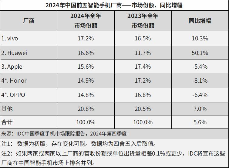 (图源:IDC 中国季度手机市场跟踪报告,2024 年第四季度)