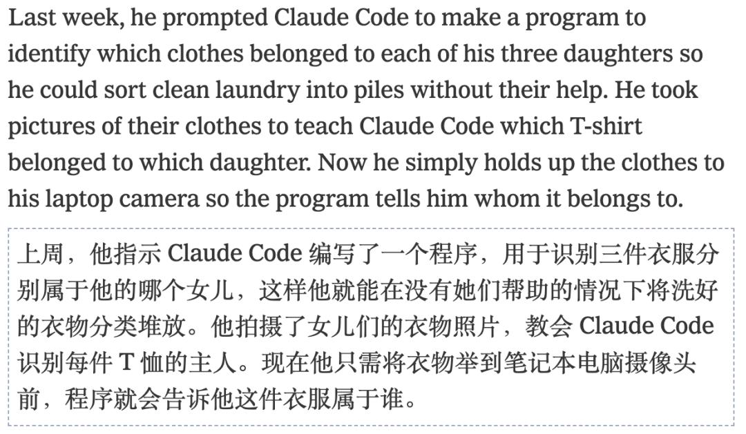 于是他打开Claude Code,用自然语言描述了自己的需求:「我需要一个App,用摄像头扫描衣服,自动识别是哪个女儿的。」