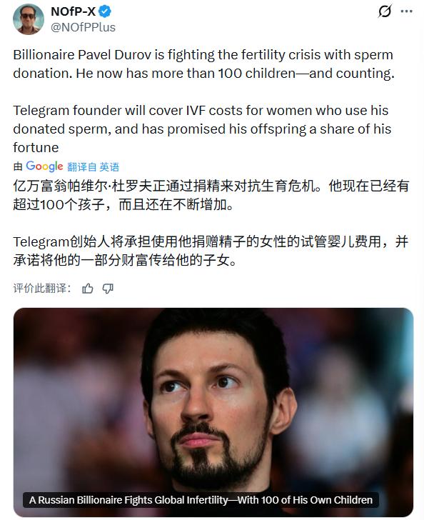 这并非普通的慈善捐赠。杜罗夫不仅承诺为37岁以下、希望使用其精子的女性承担全部试管婴儿费用,更在2025年6月抛出一则震撼声明:所有经由其精子诞生的子女,未来将平等分享他的亿万遗产。