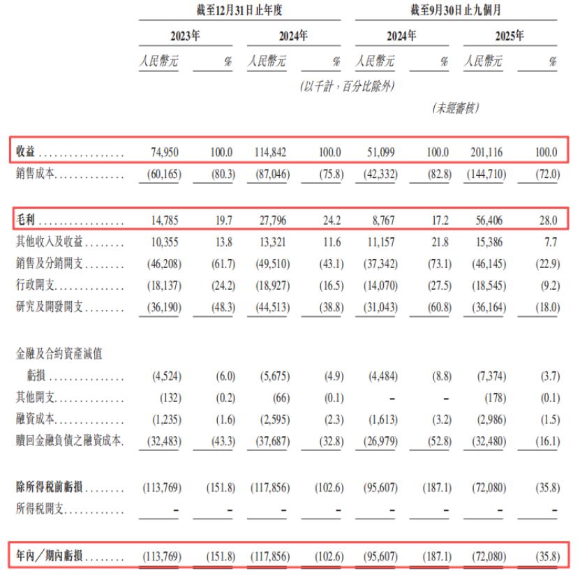 2023年、2024年、2025年1-9月(报告期),迦智科技分别实现收入7495万元、1.15亿元、2.01亿元。公司机器人的发货量由2023年的1015台增长至2024年的1294台。