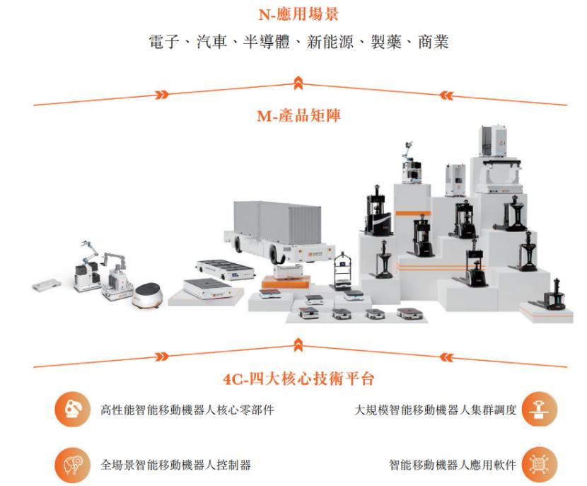 迦智科技的机器人产品组合包括AMR、叉取式机器人、室外移动机器人及移动操作机器人,可以在用户作业流程的各个细分场景得到广泛应用。