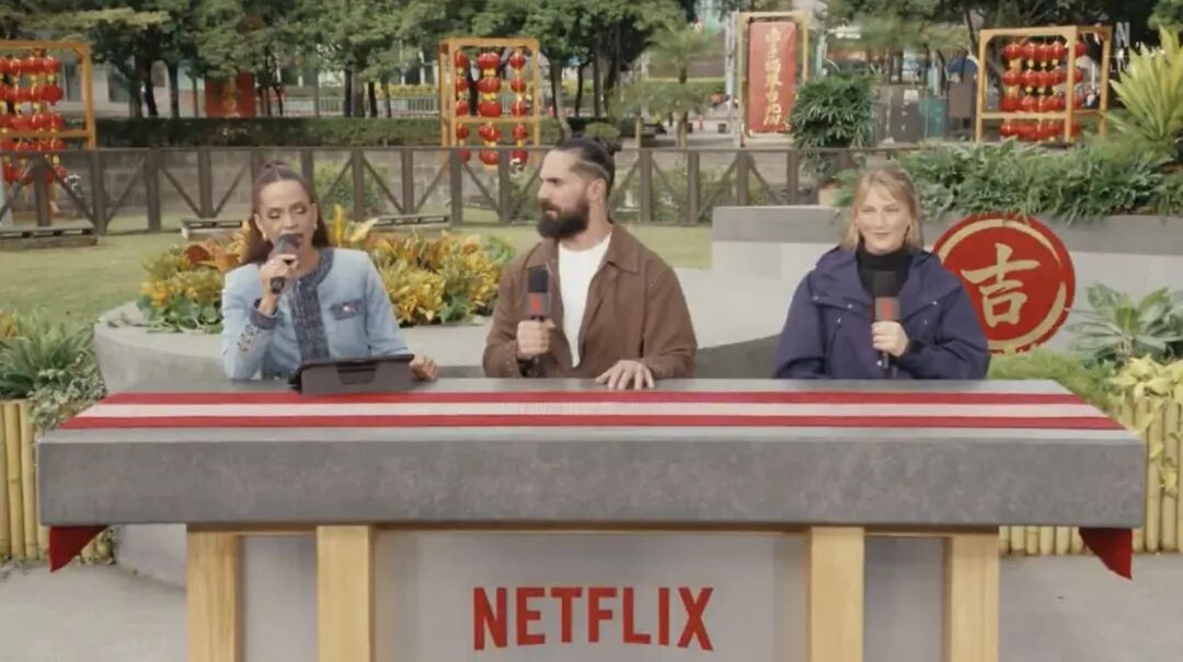 (从左至右)Elle Duncan、Seth Rollins与Emily Harrington在网飞演播室 图源:Netflix
