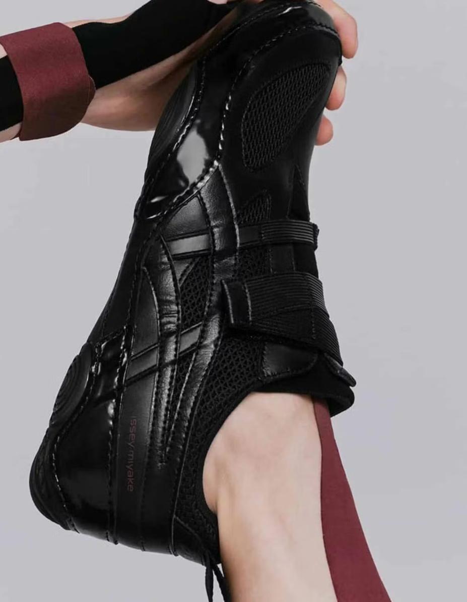 最有意思的是三宅一生和亚瑟士的联名。它证明“健康”这个概念,也能被做得很时髦、很高端。HYPER TAPING™鞋面上的交叉绑带设计,灵感就来自运动康复用的“肌效贴”(即肌肉效贴布,常用于缓解疼痛、支持关节)。它把健康支撑这个功能,变成了一个一眼能看出来、还有点前卫的设计符号,吸引那些既要功能又讲究穿搭的人。