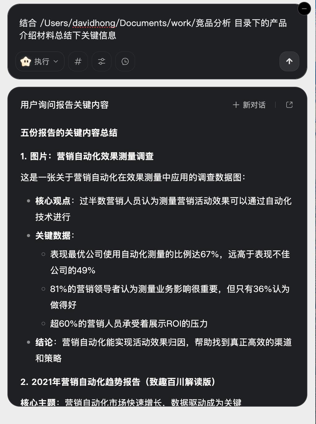 现在这个场景用具备本地文件能力的阶跃AI助手就刚刚好,我把资料都下载到一个文件夹中,然后直接让它对文件夹里面的ppt,pdf等格式文件进行总结,我直接就可以获取其中一些有价值的信息: