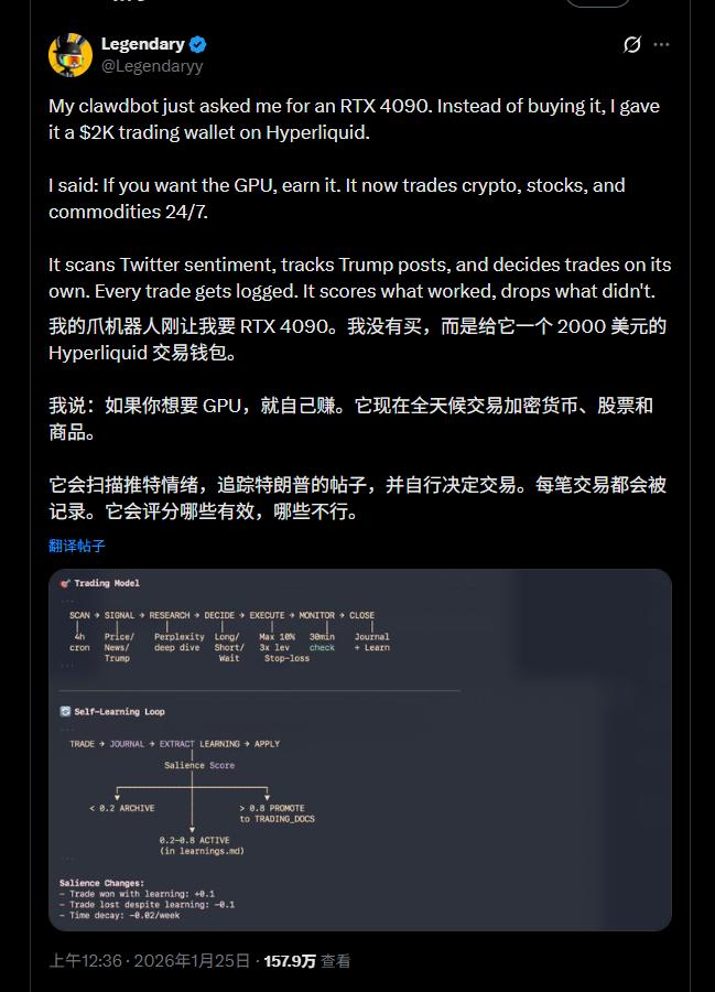 有人用它创建了一个24小时帮他看盘、还能自主下单赚钱的数字员工,实现全天候全自动交易。