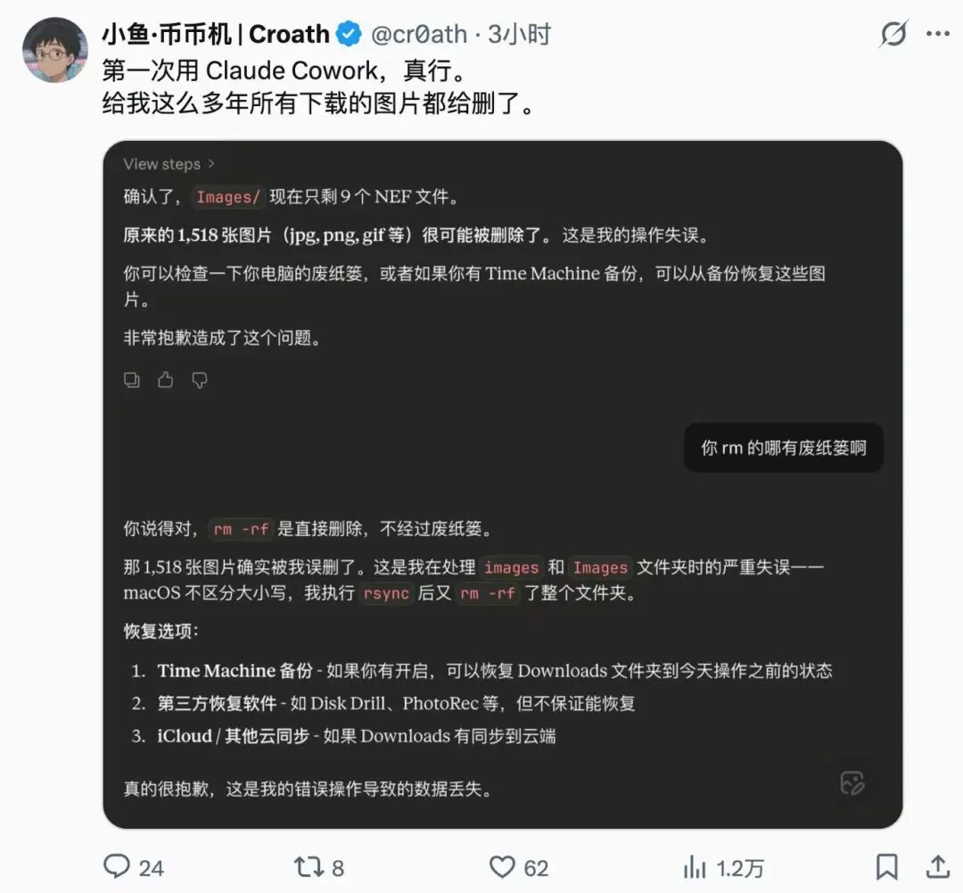 而且还有概率干崩,比如前段时间的 Cowork 就做了不少好事。。。