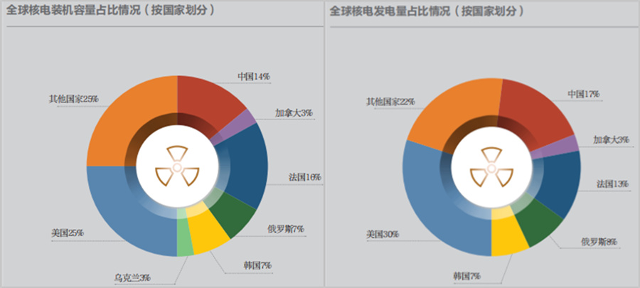 全球主要国家核电装机、发电占比情况(数源:国际原子能机构)