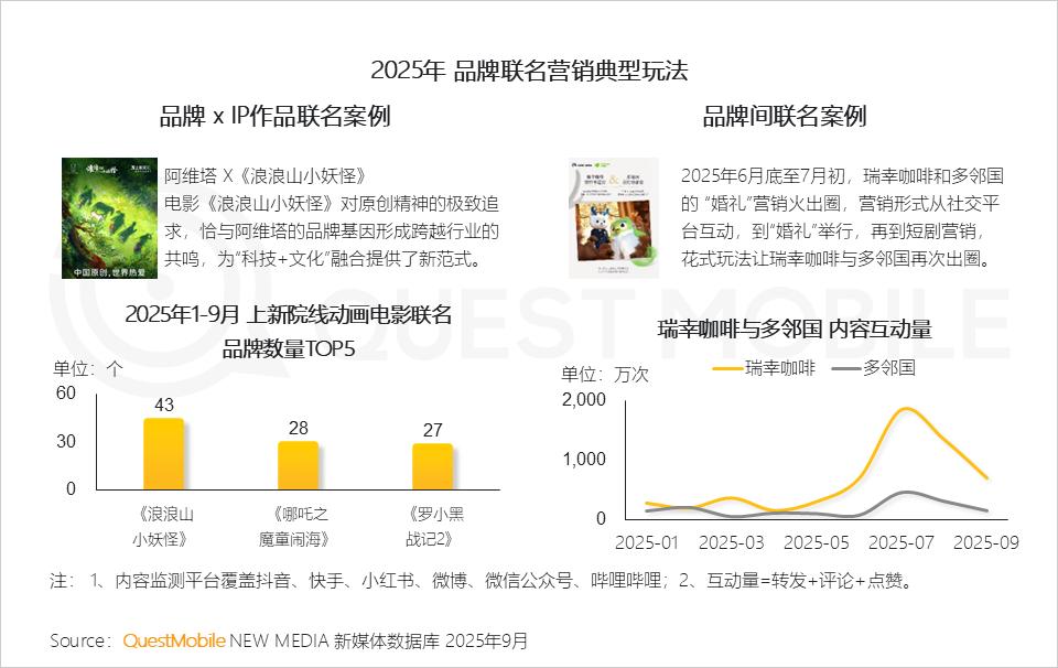 QuestMobile数据显示,2025年1-9月联名营销事件中,品牌与IP联名的占比同比增加24.1个百分点。