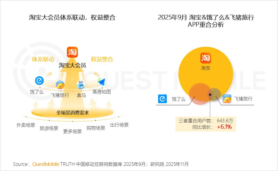 2025年8月,阿里巴巴整合了各业务的供应链、用户基础和会员权益,同时推出了连接饿了么、飞猪等应用的阶梯式会员计划。