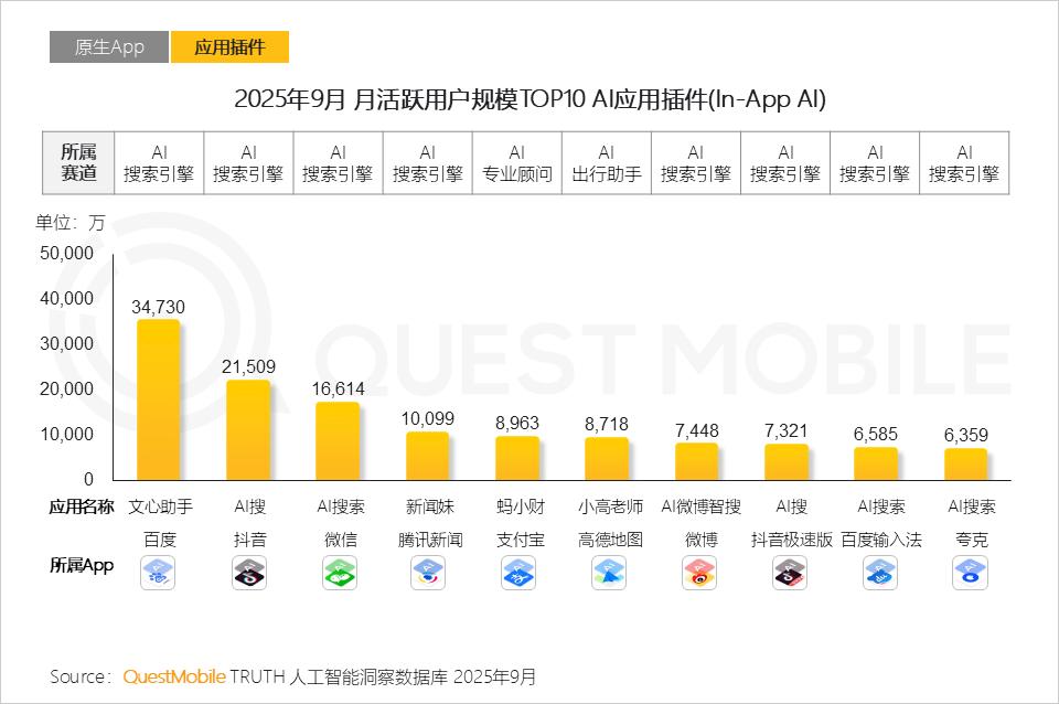 而在AI领域,在经历了“百模大战”的狂热后,2025年,AI行业模型层竞争显得更加残酷且务实,市场竞争的焦点从“谁的模型参数更大”迅速转移到了“谁的落地成本更低、速度更快”,由此带来了“插件类”(In-App AI)应用的快速爆发。