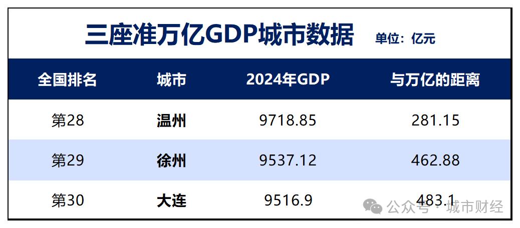 原因在于: 一方面,大连和徐州2024年GDP与万亿差距也很小。